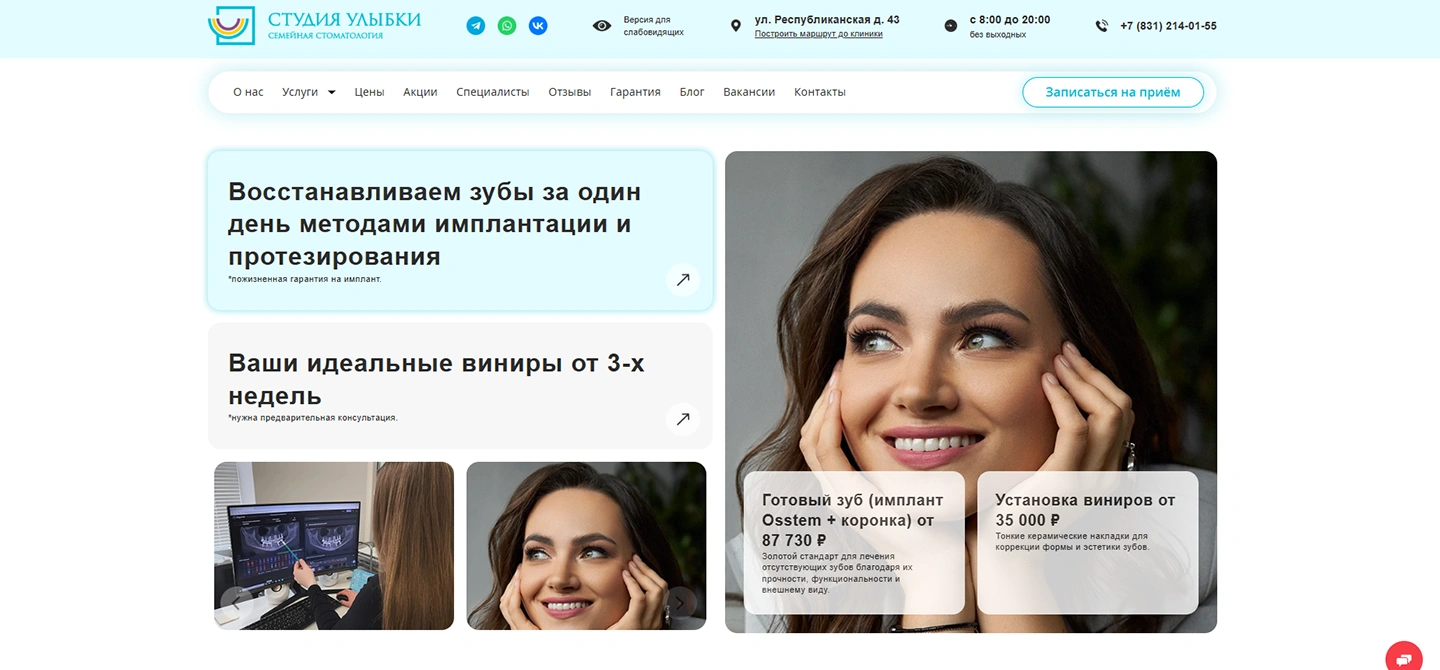 Компания предоставляет стоматологические услуги на территории Нижнего Новгорода.